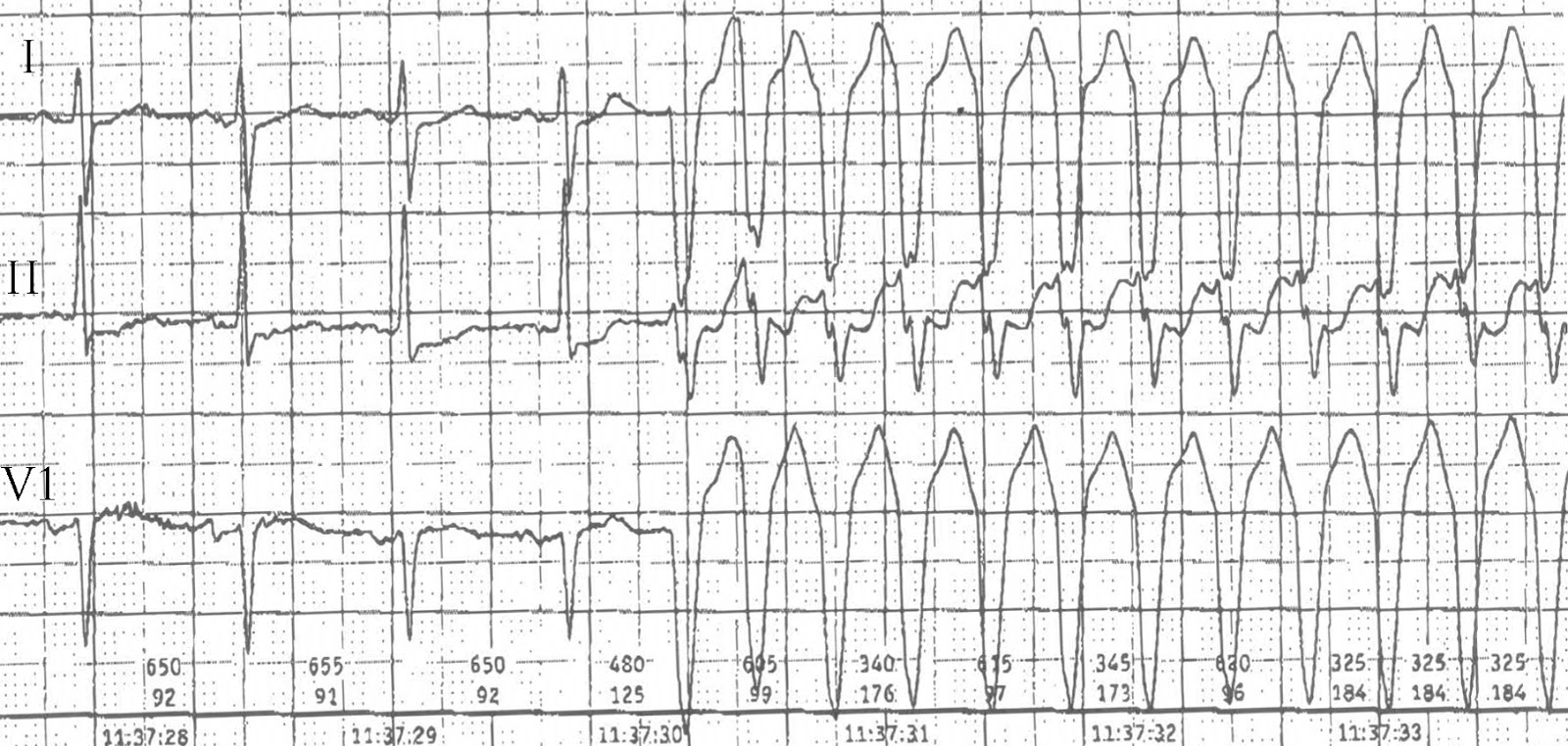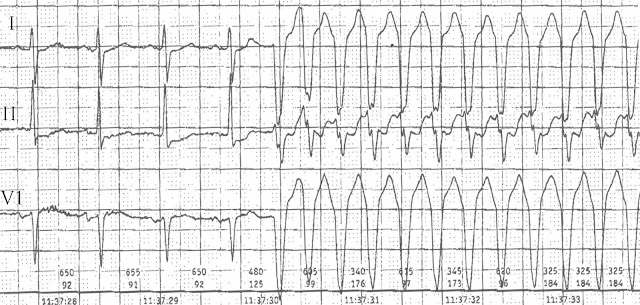 Je na EKG supraventrikulární tachykardie s aberantním převodem na komory, nebo komorová tachykardie?